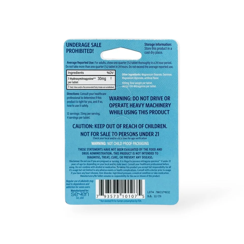 30mg of 7-Hydroxymitragynine (7-OH) per tablet